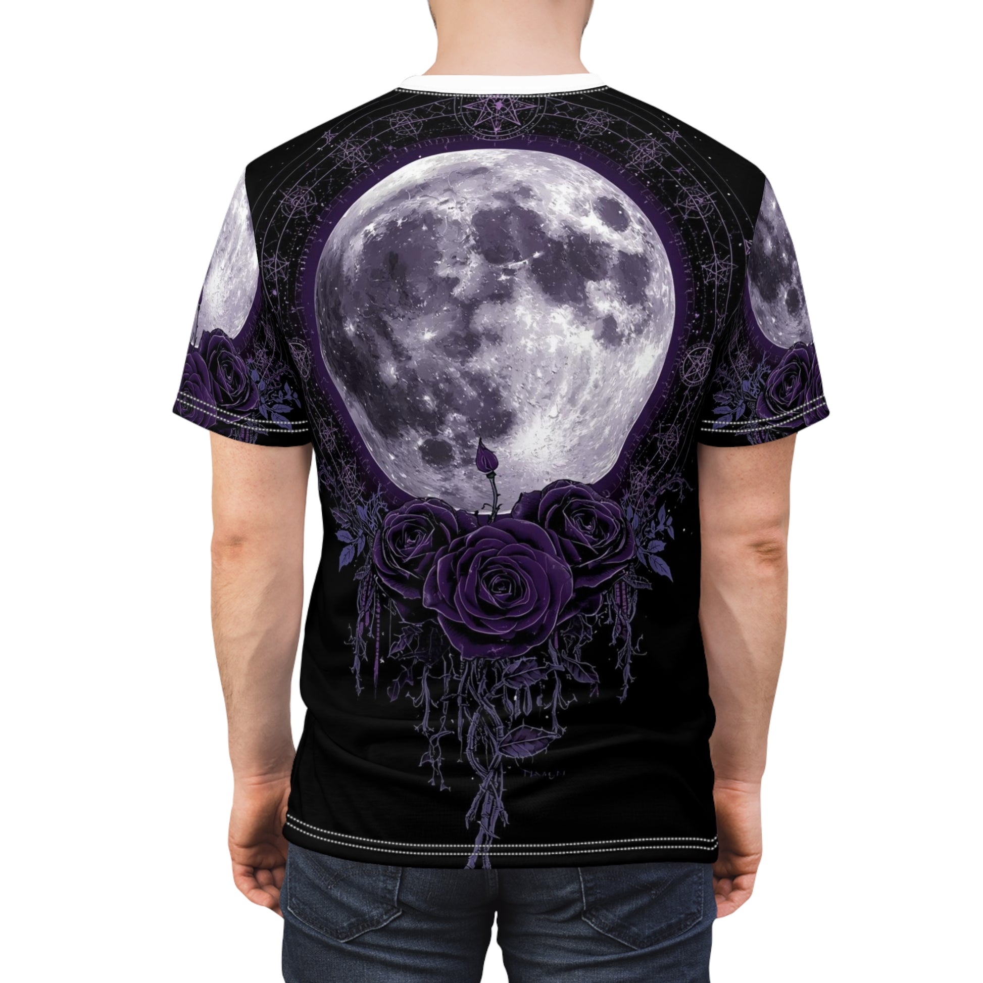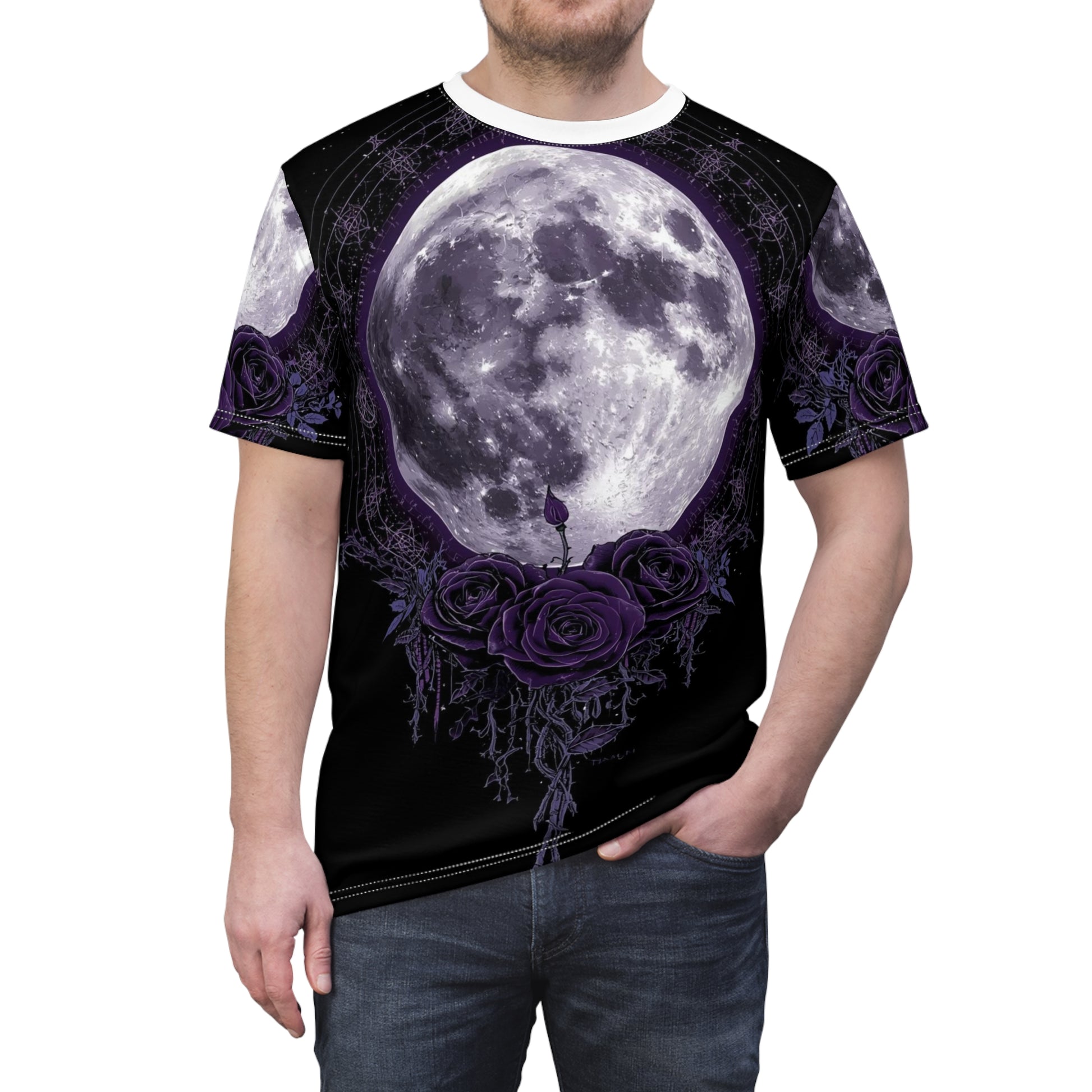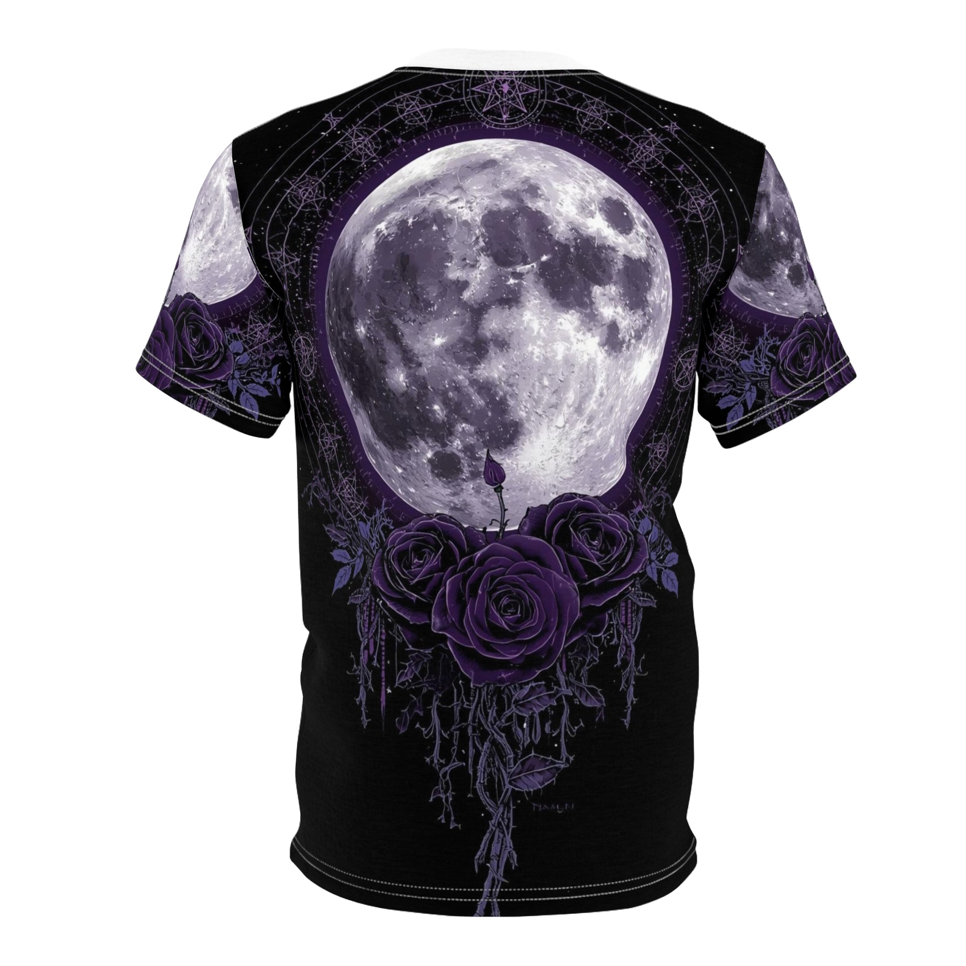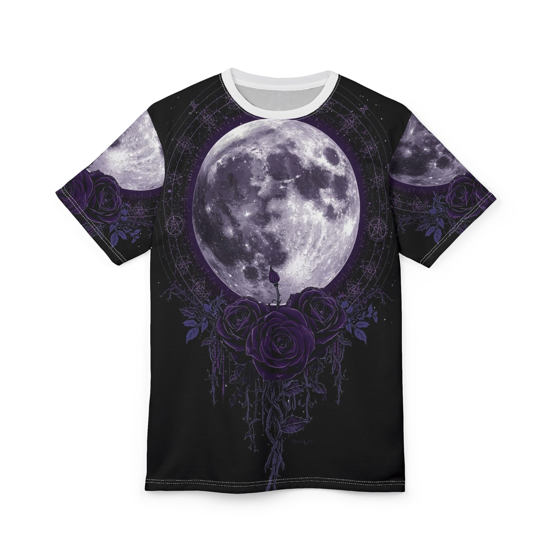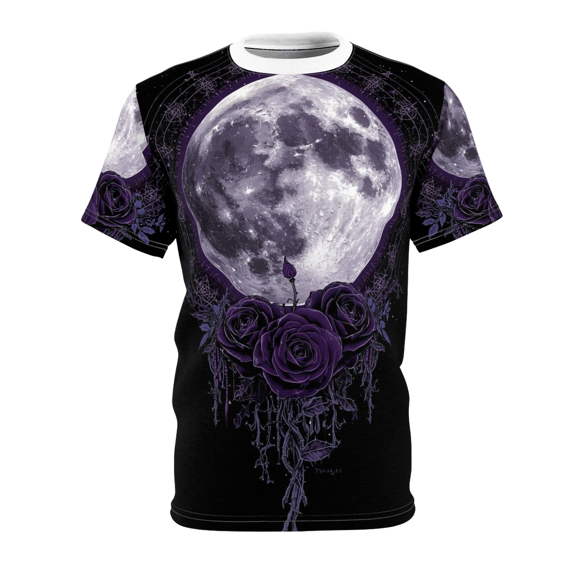 Purple Moon & Roses Tee — Gothic Floral Moonlight All-Over Print Shirt